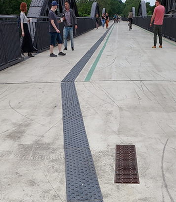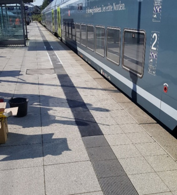 Renewal of outdated tactile guiding strips. By overlaying older guiding strips that are damaged or have outdated profiles, fully functional guiding strips can easily be restored. After simple cleaning, a smooth surface is created using the REC 2K adhesive, and the new plates are applied